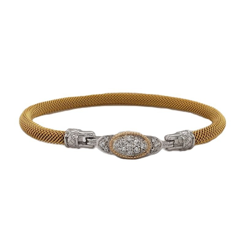 Sterling Silver Elegant Mesh Bangle 7" 15 Lab Grown Diamonds=.40 Carat 14 Karat Yellow Vermeil