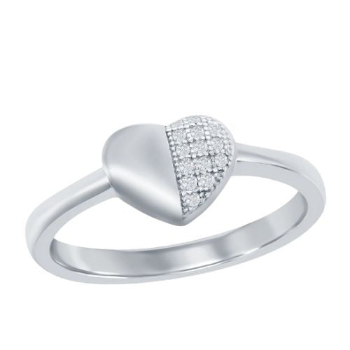 Sterling Silver Half Cubic Zirconia and Half Polished Heart Ring Size 6