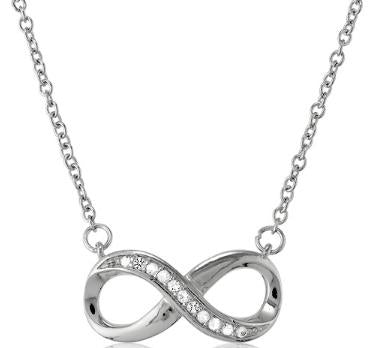 Sterling Silver Half White Topaz Infinity Necklace 16+2" Chain