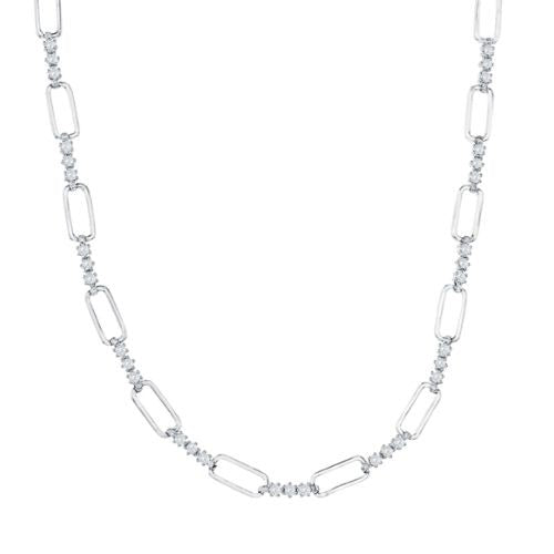 Sterling Silver Paperclip and Cubic Zirconia Necklace 16"+2"