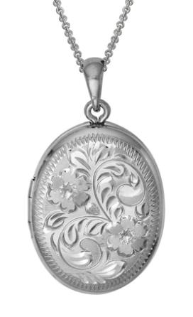 Sterling Silver Rhodium 21mm Oval Engarved Locket with 16-18" Chain