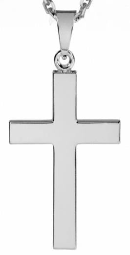 Sterling Silver Rhodium Plain Cross Pendant with 20" Chain - 4X19X31