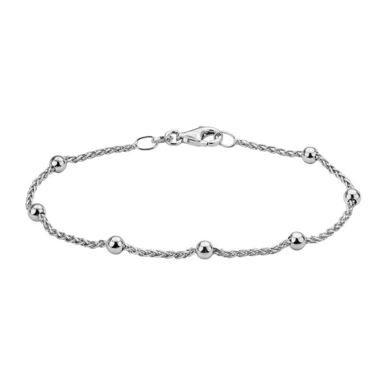 Sterling Silver-Rhodium Plated 4mm Beaded Station 7.5" Bracelet
