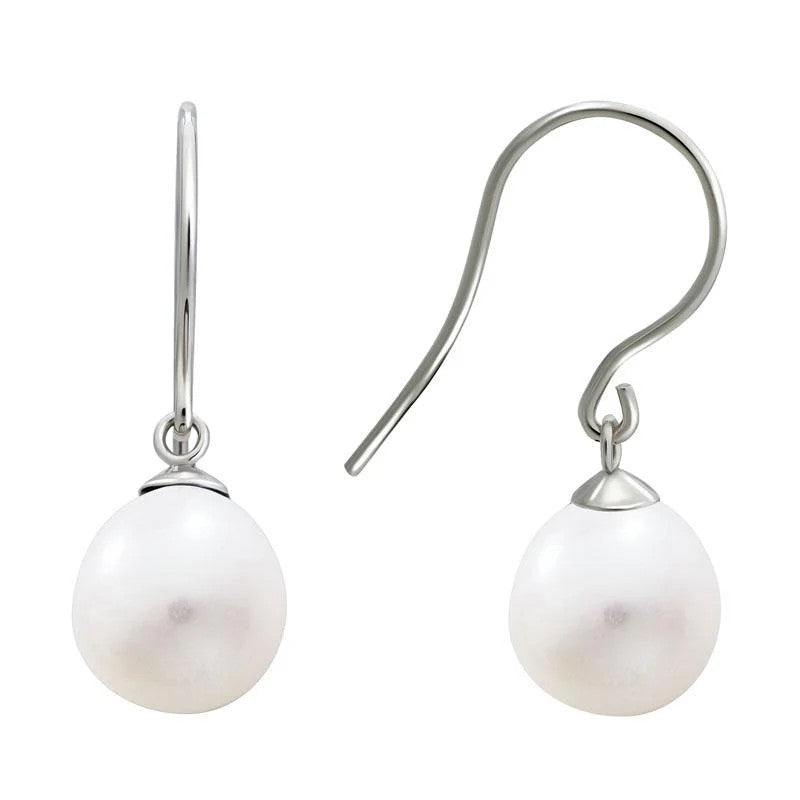 Sterling Silver-Rhodium Plated 7.5-8mm Freshwater Cultured Pearl Dangle Earrings