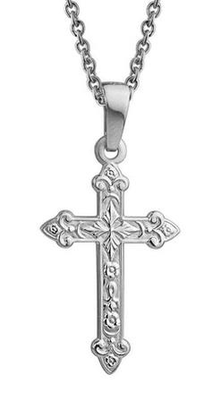 Sterling Silver Rhodium Plated Ornate Cross Necklace with Chain 16-18"