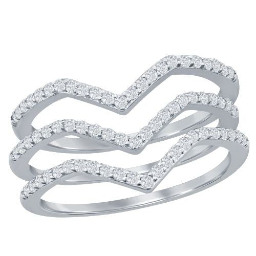 Sterling Silver V-Shaped Triple Band Cubic Zirconia Size 6 Three Ring Set