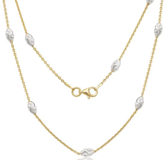 Sterling Silver Yellow Gold Plated Oval Diamond-Cut Moonbead 30" Chain