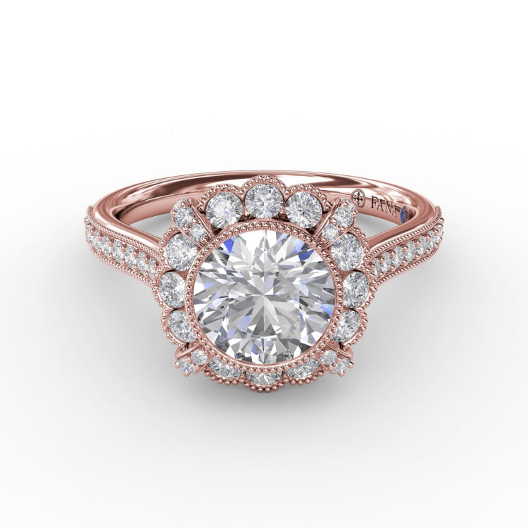 Vintage Scalloped Halo Engagement Ring With Milgrain Details