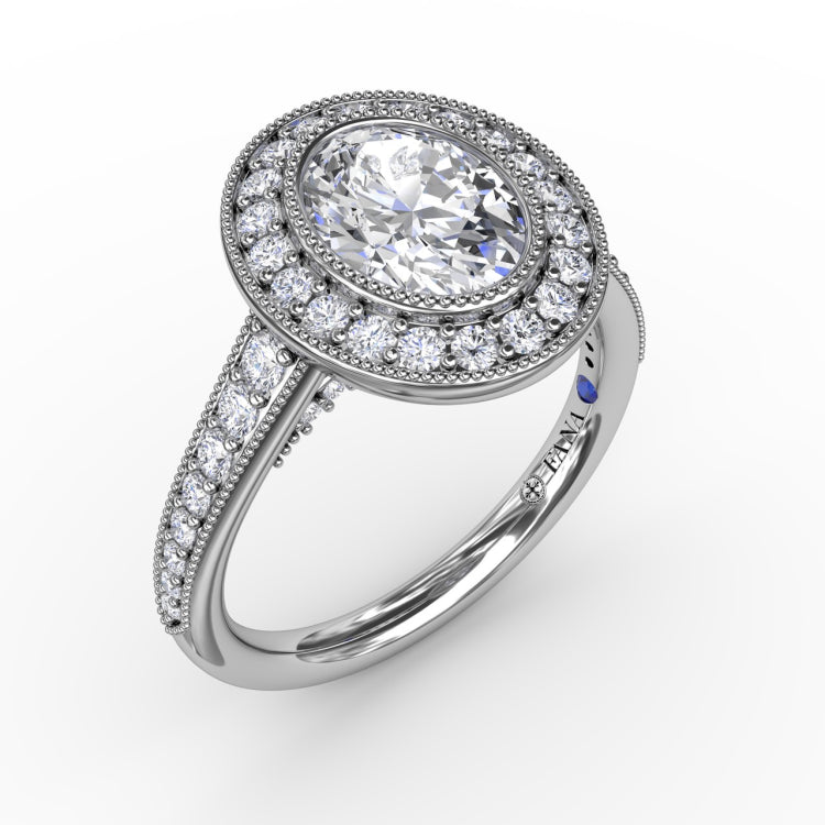 This vintage bezel set ring features milgrain detailing. This ring is available in platinum, 18KT & 14KT gold. Customize this design with an Authorized Fana Retailer.