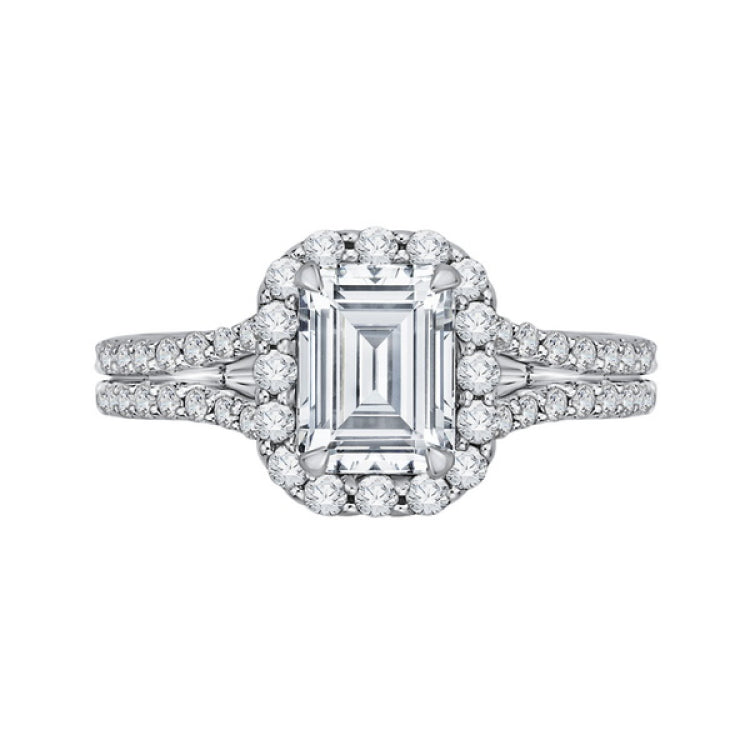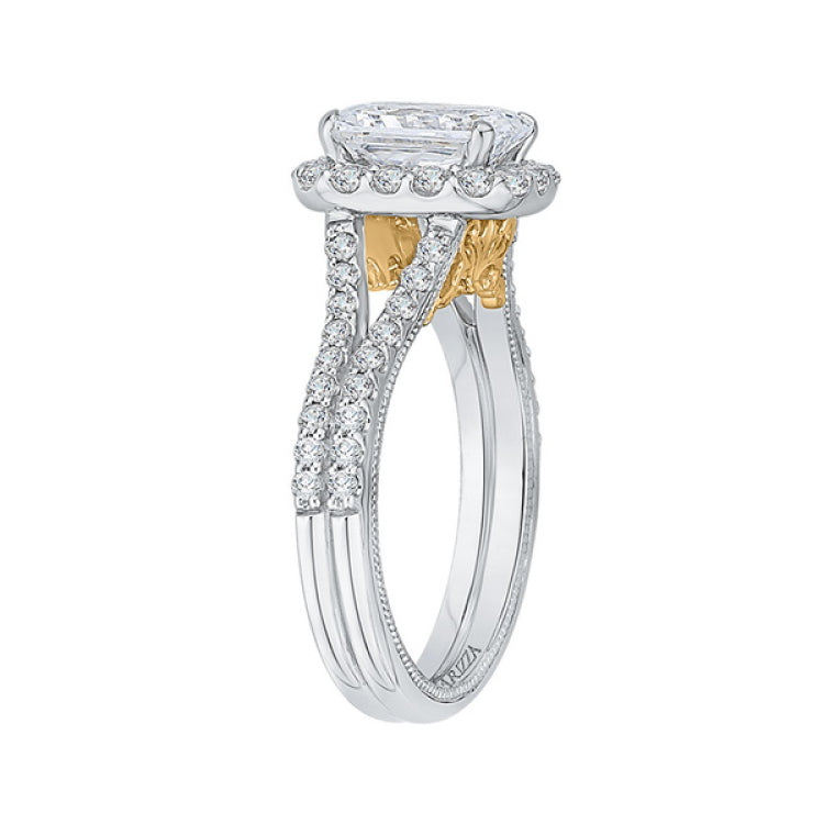 Split Shank Emerald Cut Diamond Halo Vintage Engagement Ring in 14K Two Tone Gold (Semi-Mount)