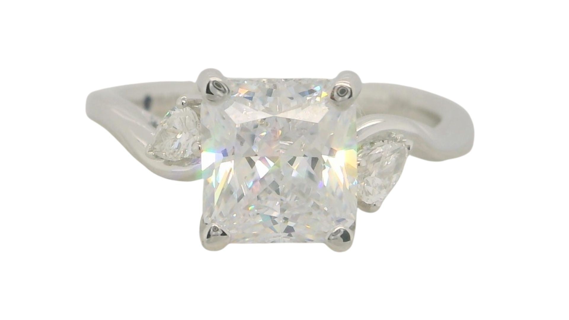 14 Karat White Gold 4 Diamonds=.19 Carat FG VS Semi Cubic Zirconia Engagement Ring Size 6.5