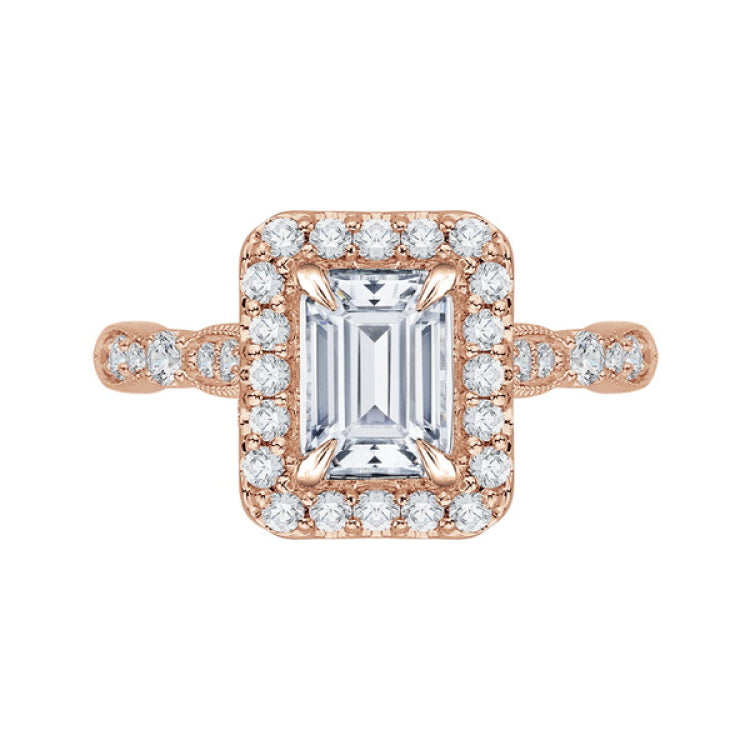 Emerald Cut Diamond Halo Vintage Engagement Ring in 14K Rose Gold (Semi-Mount)