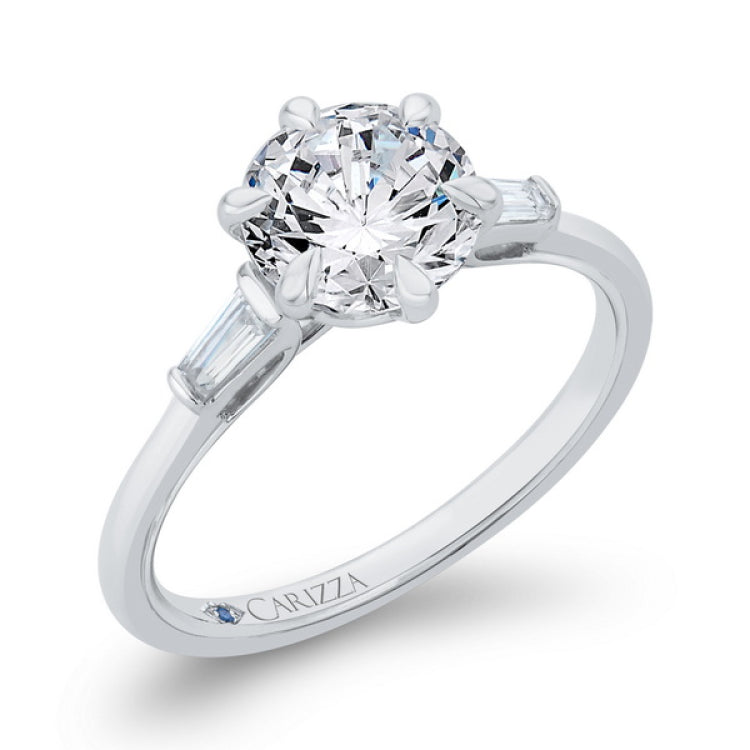 Diamond Engagement Ring in 14K White Gold (Semi-Mount), Side Stone Shape: Round, Side Stone Color: GH, Side Stone: 5