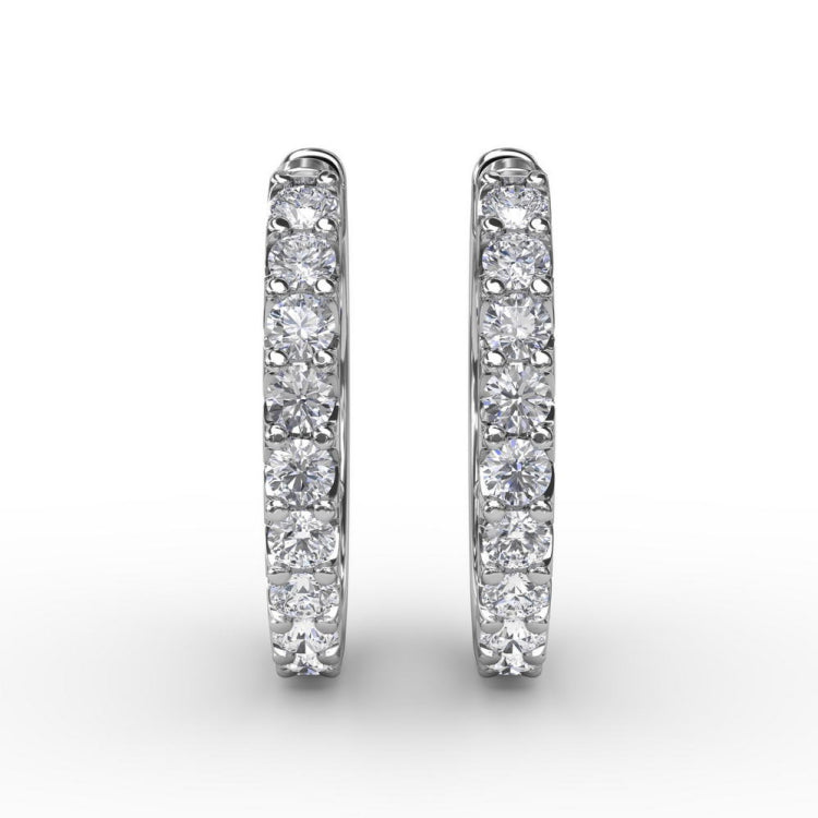 These .6ct diamond hoop earrings come in a variety of material types like 14k white gold, yellow gold, rose gold and can be customized with your jeweler. Classic Fana diamond earrings are perfect for that special woman in your life.