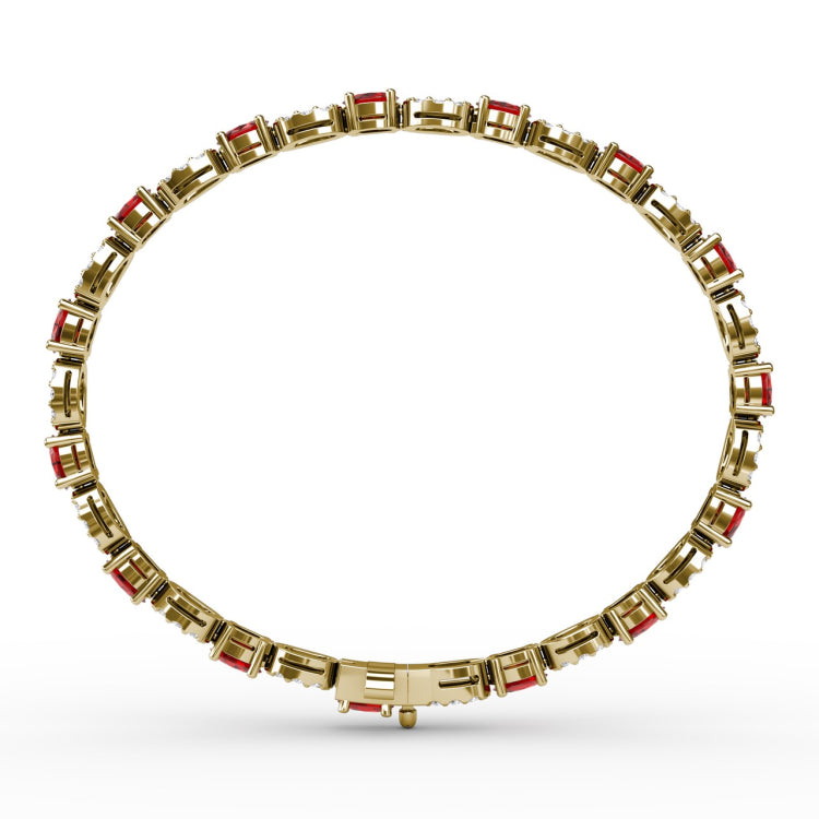 This interchanging ruby and diamond bracelet comes in a variety of material types like 14k white gold, yellow gold, rose gold and can be customized with your jeweler. Fana gemstone bracelets are perfect for that special woman in your life.