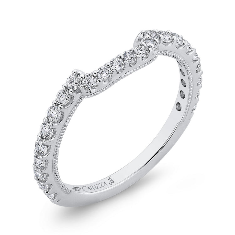 Round Diamond Wedding Band in 18K White Gold, Side Stone Shape: Round, Side Stone Color: GH, Side Stone: 25