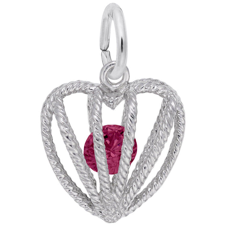 The Embraced With Love Stone Charm cages in the birth month's colored stone. This beautiful heart charm is full of love for the month of July. Available in silver and gold.