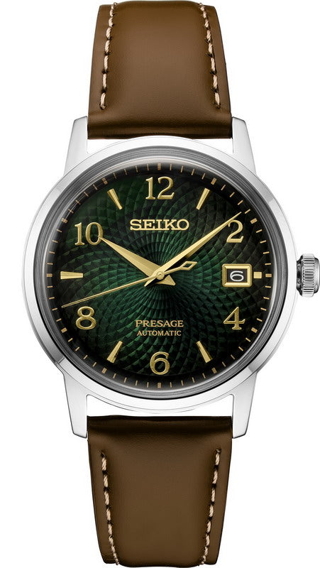 PRESAGE23JEWLE AUTO 3H D GR DIAL 50M TAN STRAP